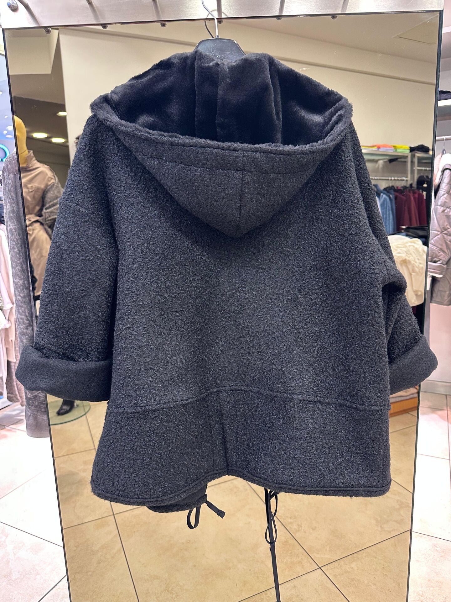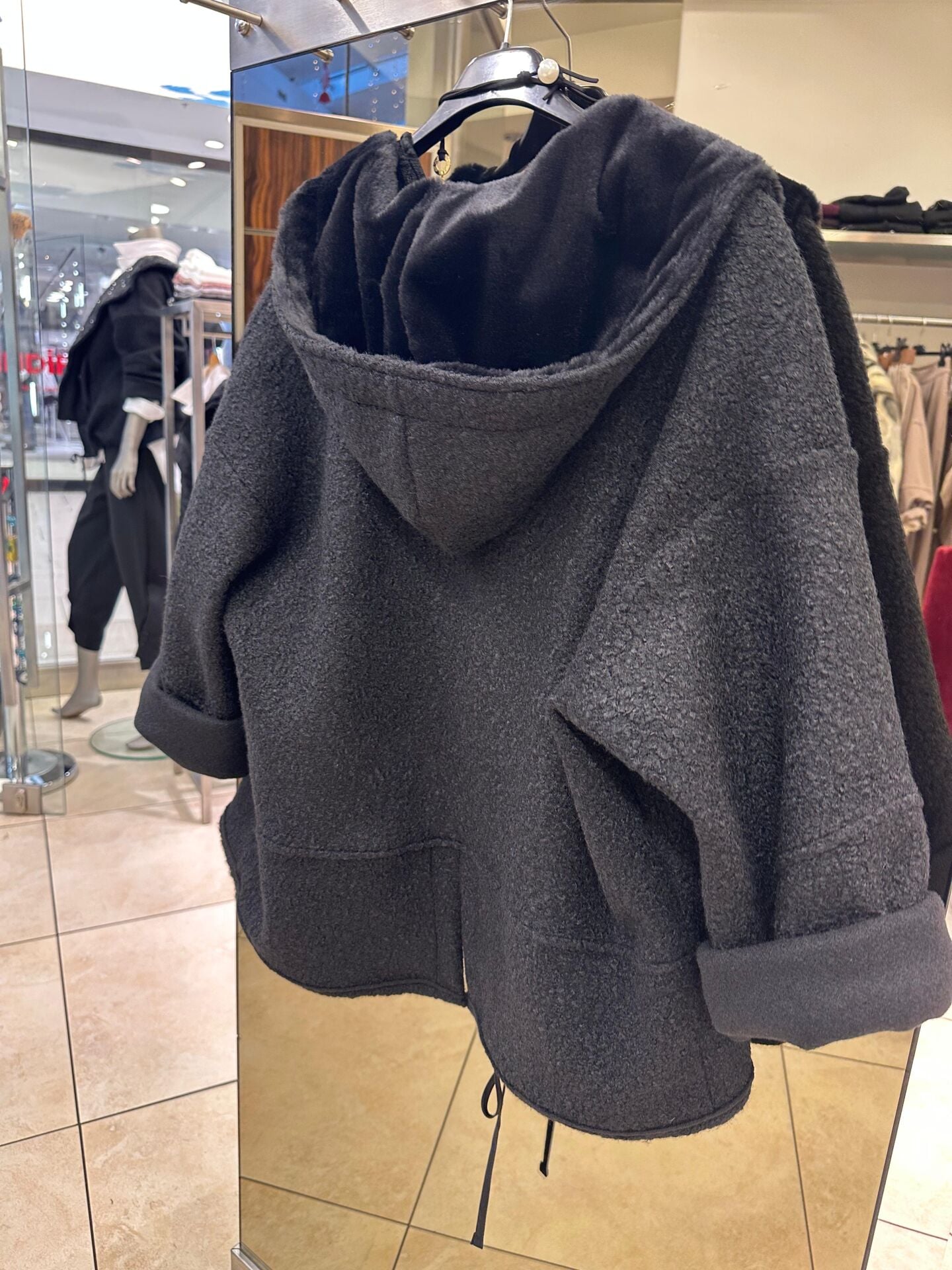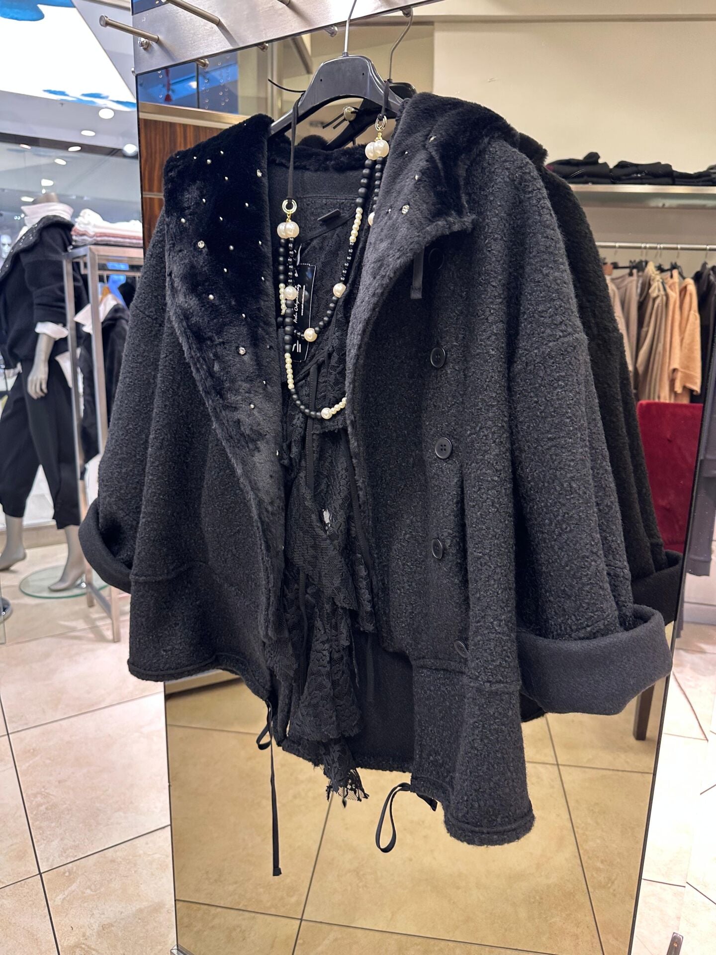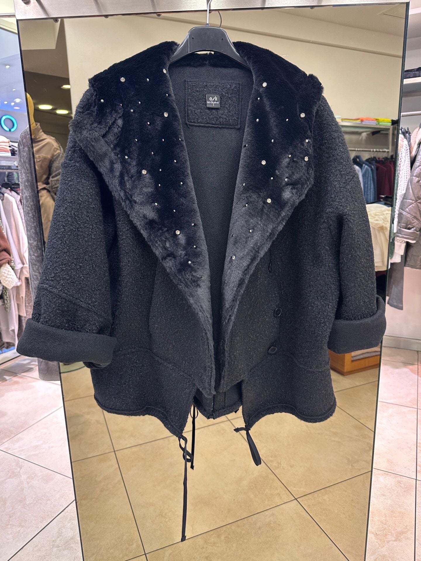 Taş Detaylı Kapşonlu Siyah Ceket